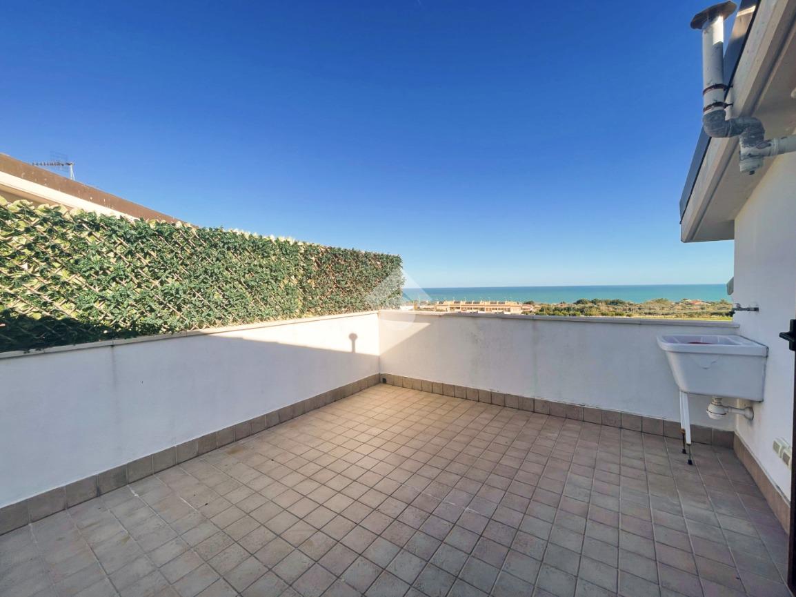 La soluzione si compone di: soggiorno con cucina a vista, spazioso e ben organizzato, terrazzo vivibile con splendida vista mare e monti, due camere da letto, bagno finestrato, ripostiglio e garage.
